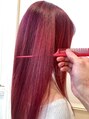 ケアブリーチでダメージを抑えつつ、ビビットなピンクをONしています(^^)/アイロンでつや感を出しています☆