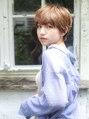 アッシュベージュ系ブラウンでカラーして明るめにし、前髪は目元ギリギリに設定して可愛くなり過ぎないようにした