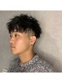 サイドとバックをスッキリと刈り上げて、毛先に軽さを出すようカット。クリープパーマでラフに仕上げています。