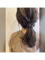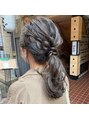 カーキとアッシュで、赤みを押さえたカーキアッシュ★毛先は暗くならないように根本から毛先まで、グラデーションにしているので、毛先はやや明るさがのこる仕上がりになってます★仕上げは夏暑いのでポニーテールにヘアアレンジ★