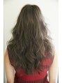 巻き髪で、女性らしいロングスタイルです!ゆるめにふんわりカールで巻きます。コテで巻いたり、アレンジもしやすい長さなので普段髪をしばる方にもオススメです!フロントは重くみえないように、空間をあけてカット、セットします!