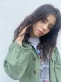 強めのウェーブが可愛いポイント!前髪も少し強めにかけるのも可愛い!ウェットな質感でストリートカジュアルな雰囲気に!