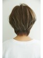 ヘアカラーはブラウン系の色をベースに明る過ぎず暗過ぎない透明感のあるカラーリングに仕上げています。ショートボブスタイルに少しレイヤーを入れることで重すぎず軽めのスタイルで小顔効果を出すことができます。