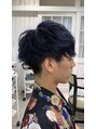 ネイビーブルー マッシュウルフ くせ毛風パーマ