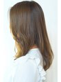 前髪なし、セミロングのパーマスタイル。アッシュ系カラーにハイライトのデザインカラーをしています。トップにボリュームを出しづらいセミロングやロングのスタイルはパーマをすることでふわっとしたボリュームが出せるのと毎日のスタイリングが楽になります