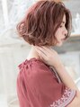 【スタイルは★ブックマーク★が便利】くせ毛風カールのフェミニンボブは個性的レッド系カラーでぐっとオシャレな髪型に◎ナチュラルボブや大人ボブ、前下がりボブやミニマムボブなどヘアアレンジもOK!耳かけも大人かわいい(メイク担当:COVERHAIRGROUP棟方)