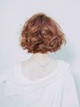 顎下レングスのショートボブにランダムで大きめのカールをつけたスタイルです。全体に大きくカールがかかっているので、しっかりと段をいれてボリュームがですぎないようにカットしています。
