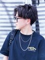 フロント長めのマッシュベースに、ゆるーくパーマをかけたスタイルです。センター分け部分を上げるように分けることで、大人っぽさも際立てることができます