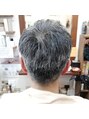 髪が多いので、量をかなりへらします、白髪を立体感が出るようにカット