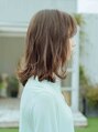 毛先に少しレイヤーを入れたぱっつん寄りなミディアムスタイルです。巻くのが苦手な方でも自然と外はねする長さでもあります。バングは巻いて目にかかる長さなのでシースルーバングが映えてとっても可愛いくなります!!