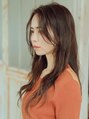 ゆるカジュアルロングスタイル☆前髪は顎下ライン、毛先がすっとシャープになるようにハイレイヤーを入れ、巻いた時の動きが見えやすくしました。毛先に厚みがないのでシルエットがIラインになり全体的に縦長なイメージになります。