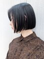 ブルーブラックワンレンボブ_耳かけウェーブパーマ_ba289283