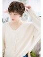 斜めバングとくせ毛風エアリーカールでふんわりやわらかに仕上げたフェミニンショート。目力UPの大人かわいいノーブルショートは、オフィスでも女子会でもウケバッチリ。360度どこから見てもキレイなシルエットで、小顔見せ&スタイルアップ効果も叶えます。