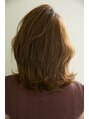 切りっぱなしのミディースタイルに、耳下くらいからゆるめのウエーブをランダムにつけたスタイルです。 伸ばしていくのに一番まとまりにくい長さですが、パーマをかけること によって乾かすだけで形のつく簡単ヘアスタイルになります。