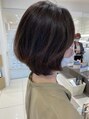 7トーンのブラウンベースのカラー。色落ちしてから赤味がでてきづらくするために、こっくりブラウンで染めています。大人っぽさを残したショートボブで耳かけでアレンジもgood