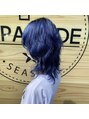 全体ブリーチの髪質に濃いブルーをオン!クリエイティビティなスタイルです!