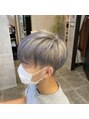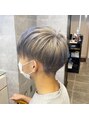 しっかりとブリーチでベースを作ってから、明度の高いグレーとラベンダーをオンカラーしてホワイトシルバーに。ツーブロックの爽やかなショートスタイルとマッチしてますね。【池袋/キャラシャローネ池袋/池袋駅近/池袋東口】
