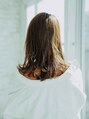 鎖骨レングスのミディアムスタイルです。ベースは外ハネで、表面に内巻きをいれることでやわらかい雰囲気になります。前髪は流行りのシースルーバングで!オンオフの切り替えが簡単な扱いやすいスタイルです。