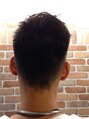 眉毛のラインでツーブロックを2カ所に入れるスタイルです。顔の形などに合わせて切りもみあげライン3ミリ耳ライン6ミリで刈り長短のあるスタイルです。