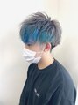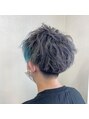 ブリーチを1回してからベースをシルバーグレーにして前髪にブルーのインナーカラーを入れました!