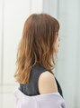 ウェッティな質感のセミロングスタイル。シースルーバングならぱっつん前髪でもかわいい!ほつれウェーブパーマをかけてIラインシルエットに!オイル仕上げでおしゃれ感アップ!