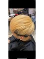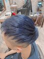 ブリーチを2回してからコバルトブルーのせた個性的なカラーデザインです。