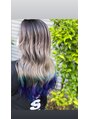 スジ感を出したバレイヤージュに毛先はブルー系の原色グラデ!!!