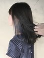 セミロングスタイル。カラーはインナーアッシュブルー(Wカラー)。