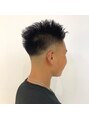 サイド&えり足はスキンフェードにカット!トップは濡れたままジェルとワックスを混ぜてドライでセット!男らしくワイルドに攻めるバーバースタイルです☆