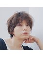 前下がりのショートスタイル。トップには動きとボリュームが出やすいようにレイヤーを入れます。短くしたいけど、丸顔やエラの張りが気になる方は、もみあげを長めに残すことでお悩みをカバーできるのでおすすめのスタイルです。
