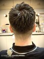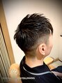 バリカン5mmから2mmのソフトフェードです。前髪の左側にクセがあるので左側は短くしアシメ風にしてます。トップの毛量を調整し、動きが出やすいようにカットしてます。