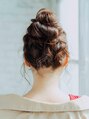 巻き下ろしヘアに飽きてきた方はお団子アレンジにするのもおすすめです。女性像を明るく活発なイメージにしてくれます。ベース巻きトップがふんわりとするようにう全体を巻きます。