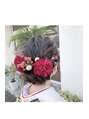 成人式のためのアップスタイル。編み込みなどふわっとさせた雰囲気に、お着物の柄や色と合うように生花をつけたりと華やかに仕上げました♪