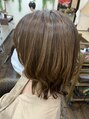 細めのハイライトを表面に入れて全体はパープルベージュカラーで艶っぽく!カットはレイヤースタイルでくびれのある雰囲気に!