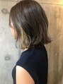 シアーな色味のインナーカラーを内側に入れた、切りっぱなしのボブの中でも動きのあるスタイルです。全体のカラーはグレーアッシュ、内側は明るめのグレージュでカラーしています。比較的全体と同じ色味を入れると可愛いです^^