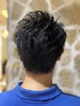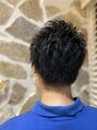 刈り上げないギリギリの短めショート。トップのみポイントでパーマをかけ、スタイリングがしやすいようにしました。セットがしずらい直毛の方にオススメです。