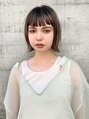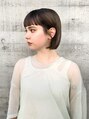 シンプルなボブにオン眉の前髪が目を引く可愛いスタイルです!顎ラインのボブは乾かして内巻きのままでも外ハネに巻いても可愛いのでオススメです!オイルを付けて、ウェットな束感を作るとイマドキのオシャレヘアに。