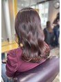 しっとり潤いのあるナチュラルピンクカラーで、硬く見えがちな暗髪も、柔らかく優しい印象に。カットは基本的には乾かすだけで内に入りやすい様にカットしています!offの時は外ハネにしてカジュアルに決めてもOK♪