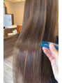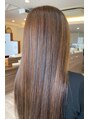 全体落ち着いたトーンのカラーに表面中心にハイトーンカラーで馴染むようにスジを入れてストレートでも立体感や束感を出しました。さらに水素トリートメントでツヤツヤに。