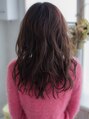 大人ロングスタイルです!センターに分けたフロントがナチュラルな雰囲気にしてくれます。ブラウン系のカラーリングでツヤをだすのがオススメ!顔まわりをリバース巻きで仕上げ、明るく大人っぽい印象にします。全体をカールを出して巻きます。【行徳】