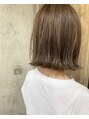 切りっぱなしの肩に付かないレングスのボブです。透け感のある、オリーブベージュのカラーが可愛いです♪毛量が多い方でもチャレンジしやすい様に、内側の調整等はきちんと見極めてカットします!