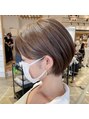 【白髪ぼかしハイライト】シアーブラウン丸みショート