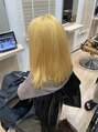 2回ケアブリーチしてほんのりピンクのオレンジベージュに大変身!ビフォアは縛り癖がついてるだけです。