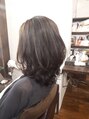 形状記憶ドライパーマがかかってるミディアムスタイル。ポイントでハイライトのカラーが入っています。