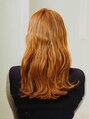 オレンジ系のブラウンカラーのシンプルなロングヘア!アシメの前髪がワンポイントになっているスタイルです。お洒落な印象や元気で明るい女性の印象を与えられます!