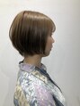 カラーは透明感のあるグレージュ系で小顔に見えるショートボブカット