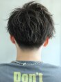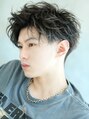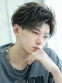 かきあげた前髪と、サイドのリバース感、ハネ感がカッコいい!アウトラインは高めに刈り上げ、サイドは2ブロックを。MIXパーマでランダムな束感とボリューム感でスタイリングをよら簡単に!カラーは8トーンのサファイア