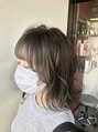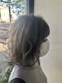 ブリーチなしのハイトーングレージュ。肩ラインの外ハネで可愛いく。