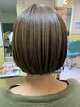 あごぐらいの長さのミニマムボブ♪幼くなり過ぎないようにトップにレイヤーを入れてます!お客様それぞれに似合った長さ丸さセットのしやすさを意識してカットしてます^_^ハイライトカラーはグレージュ系で秋っぽく仕上げました。