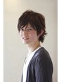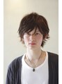 ショートスタイルで、カラーはアッシュベースのベージュ 全体にパーマをかけることによって、男らしさの中に柔らかさをプラス